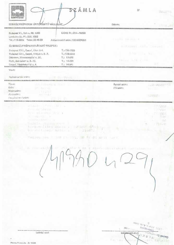 Az Oldtimer Show Kft. idén 25 éves. Ez alkalomból úgy gondoltuk kisorsoljuk a saját kisautónkat, ami egy eredeti állapotú Golf II 5 ajtós, piros színű, 1990-ben gyártott autó. A Golf muzeális minősítését a rajta látható OT rendszám jelzi. Az autó alja is eredeti, nincs rajta alvázvédő. Az autóhoz jár az eredeti MERKUR Autóértékesítési vállalat számlája, mely szerint ezt az autót a vállalat budapesti telephelyén adták át 1990. márciusban. Korabeli ára 777.000Forint volt. Ehhez jött még 340Ft vizsgadíj és még 80Ft rendszám díj is. (az eredeti dokumentumon jobban láthatók a feliratok, de a vásárló nevének kitakarása utáni scannelés miatt már halványan láthatók) AZ autóhoz jár még a MERKUR-os jótállási jegy, valamint az eredeti német és magyar nyelvű kezelési könyv. Az autónak mindkét eredeti kulcsa megvan! Régi autóknál ritka, hogy az autó összes zárját egy kulcs nyitja. A mi kisautónk ilyen volt. Most már az új tulajdonosok gondoskodnak róla!